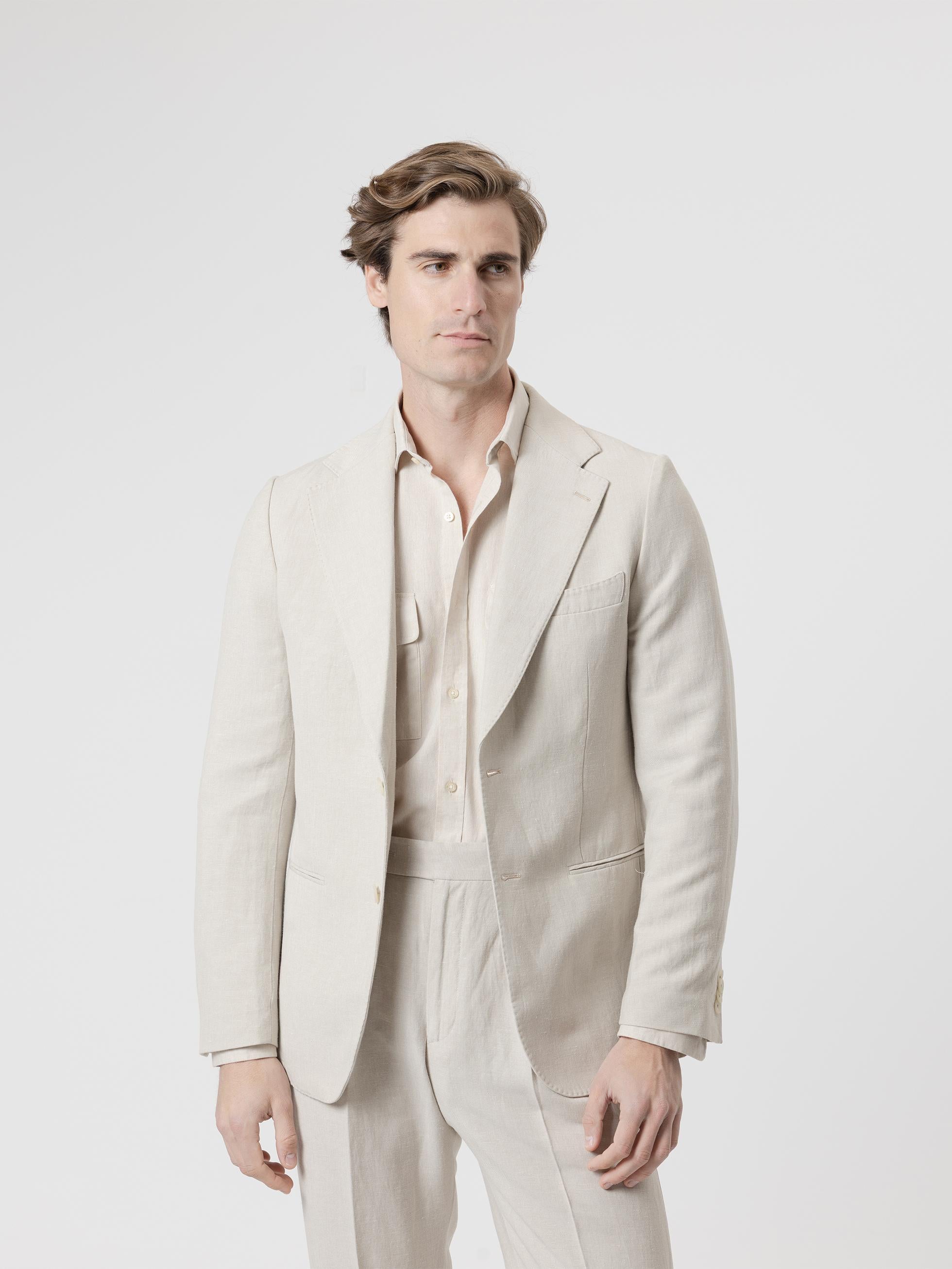 El modelo mide 186 cm y lleva una talla 48.