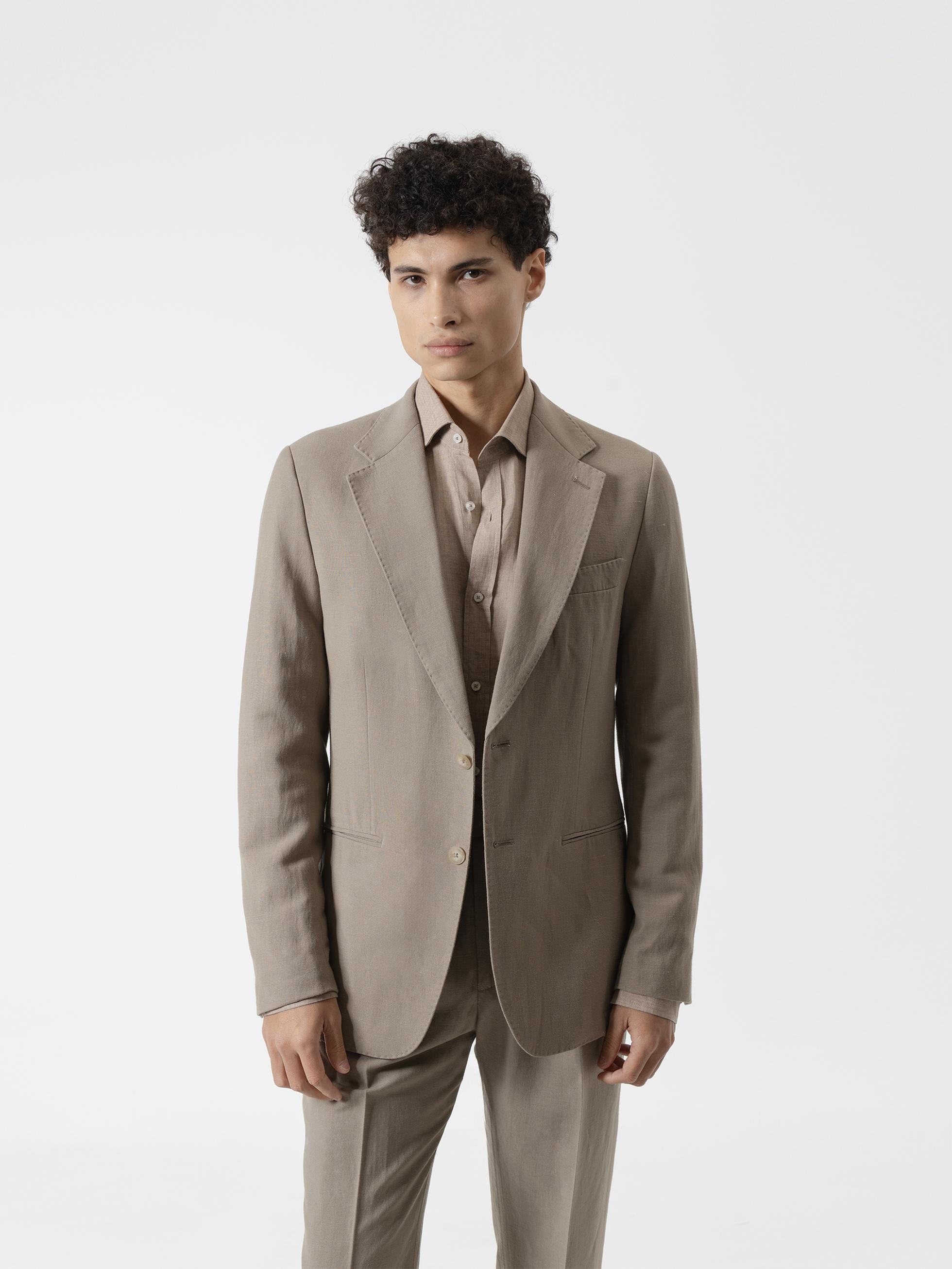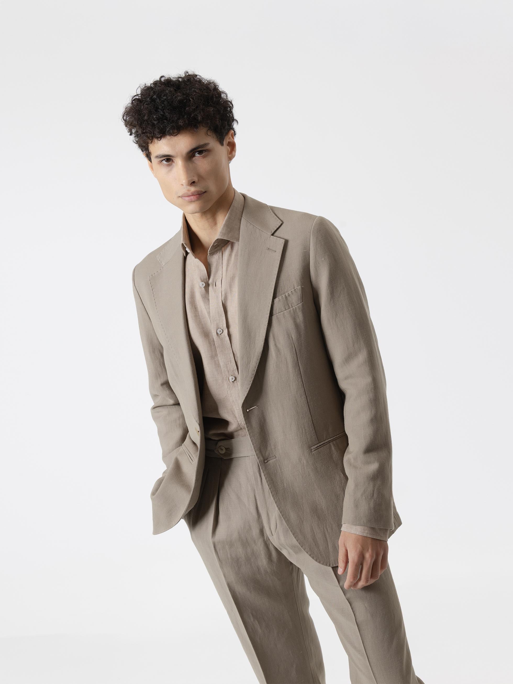 El modelo mide 185 cm y lleva una talla 48.