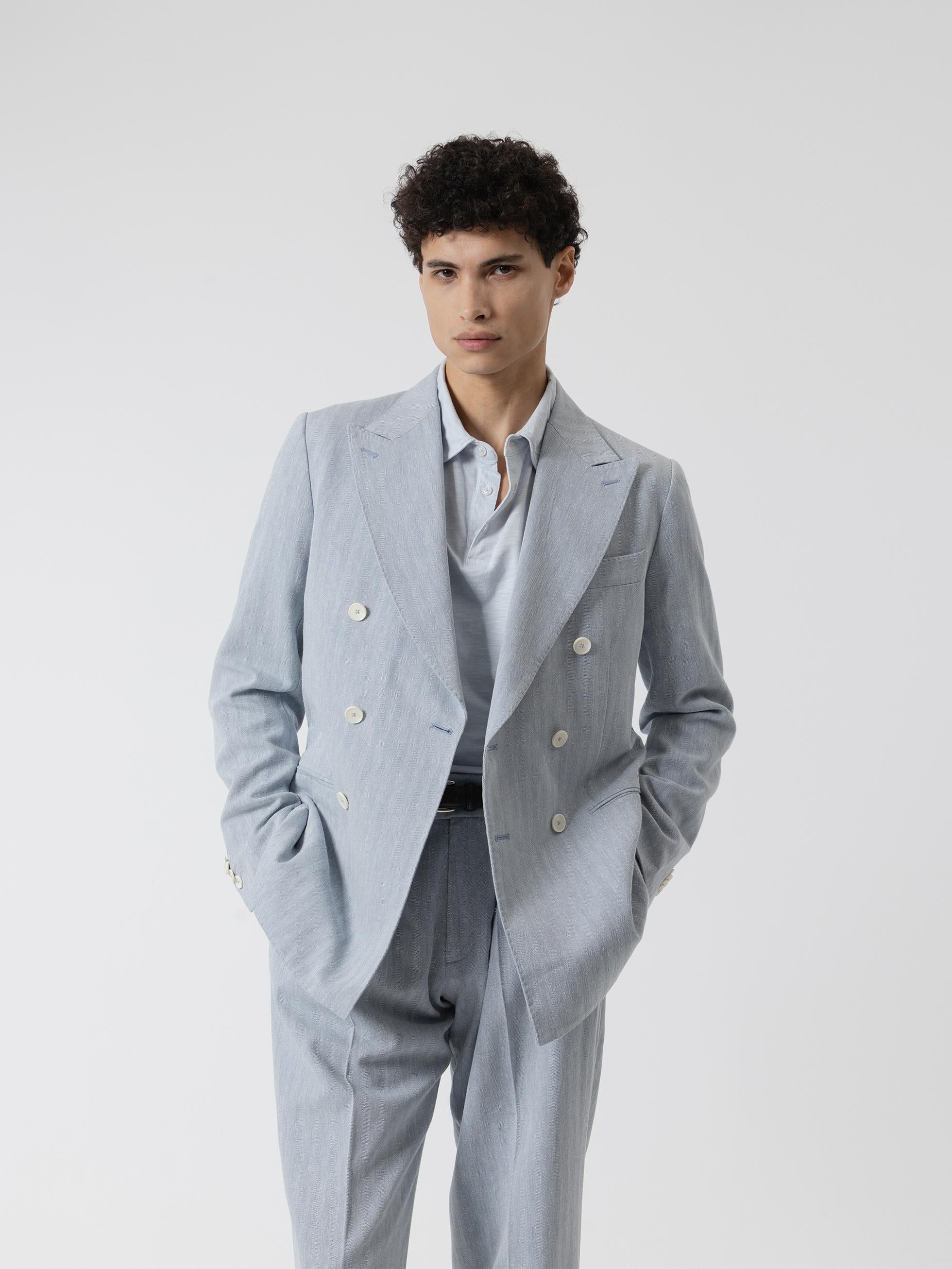 AMERICANA LINO ESPIGA CRUZADA CELESTE