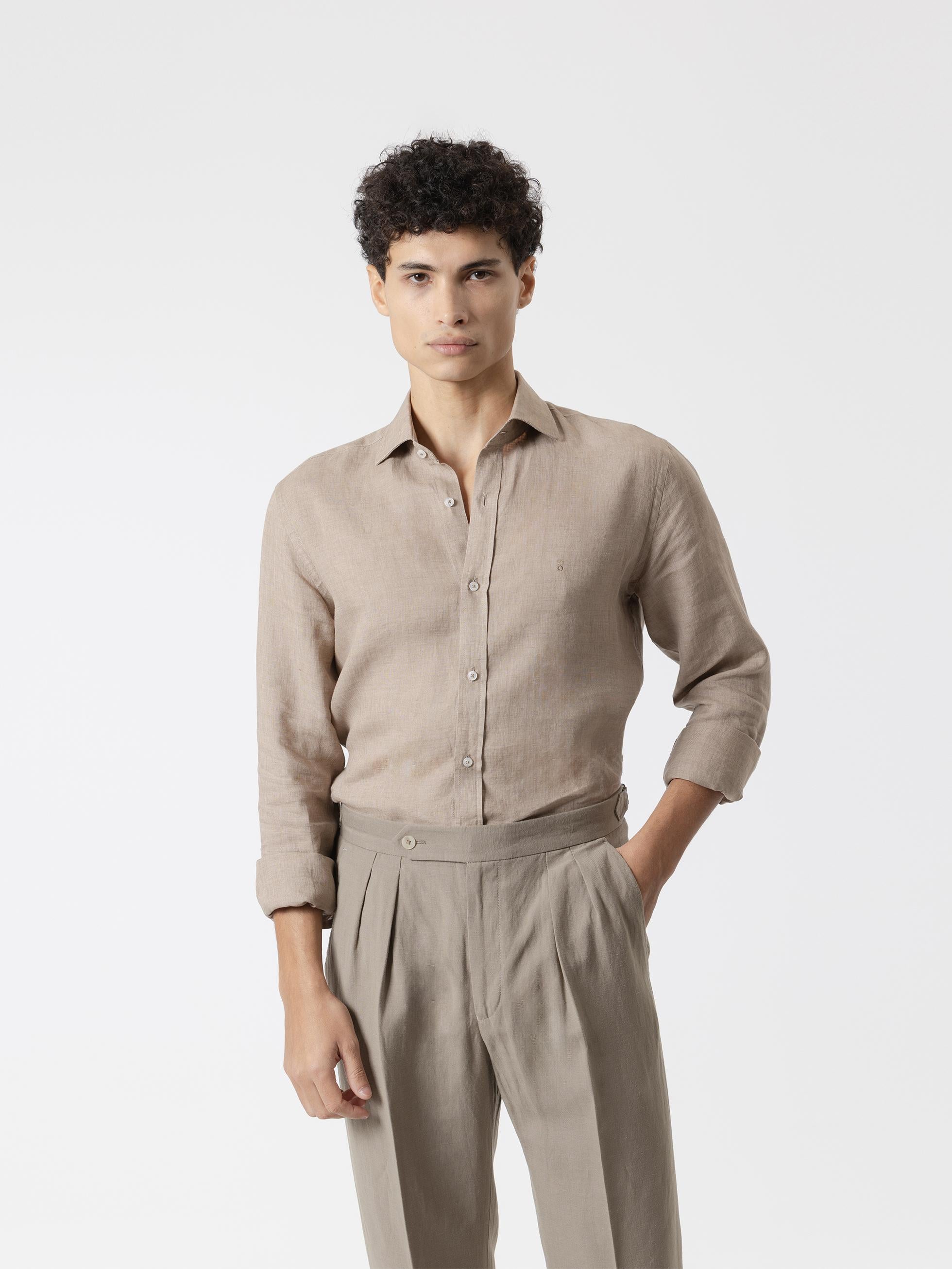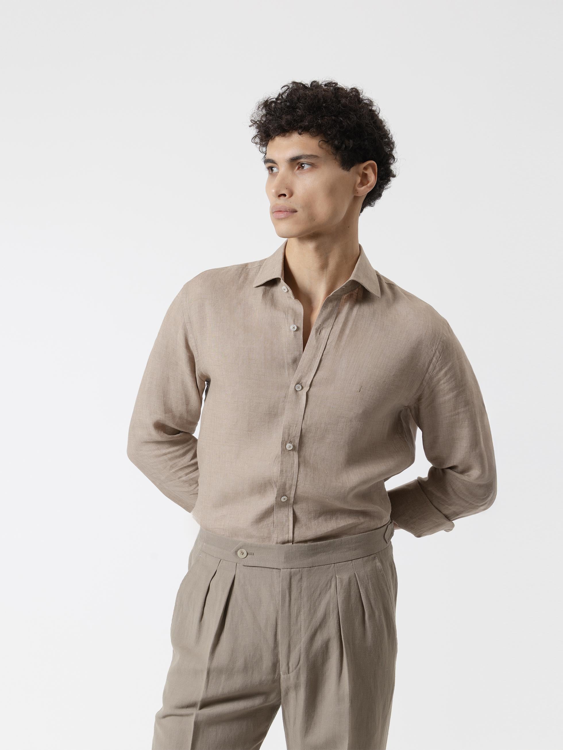 CAMISA LINO MARRÓN