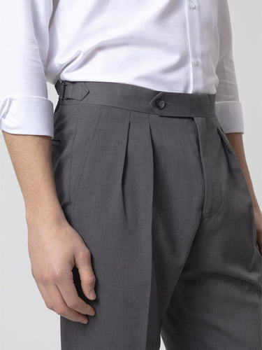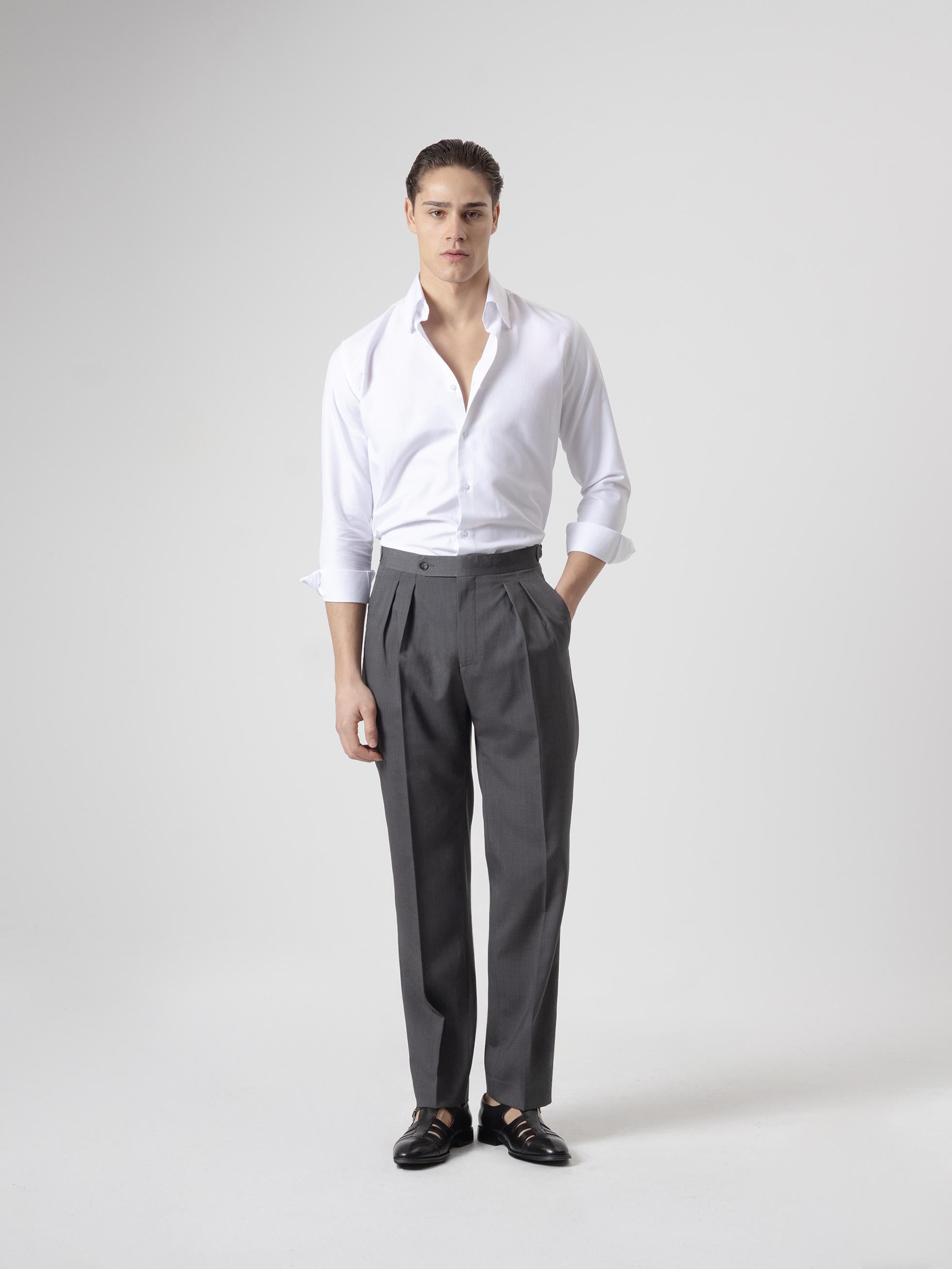 - Pernera ancha, 2 pliegues invertidos de gran profundidad en delantero