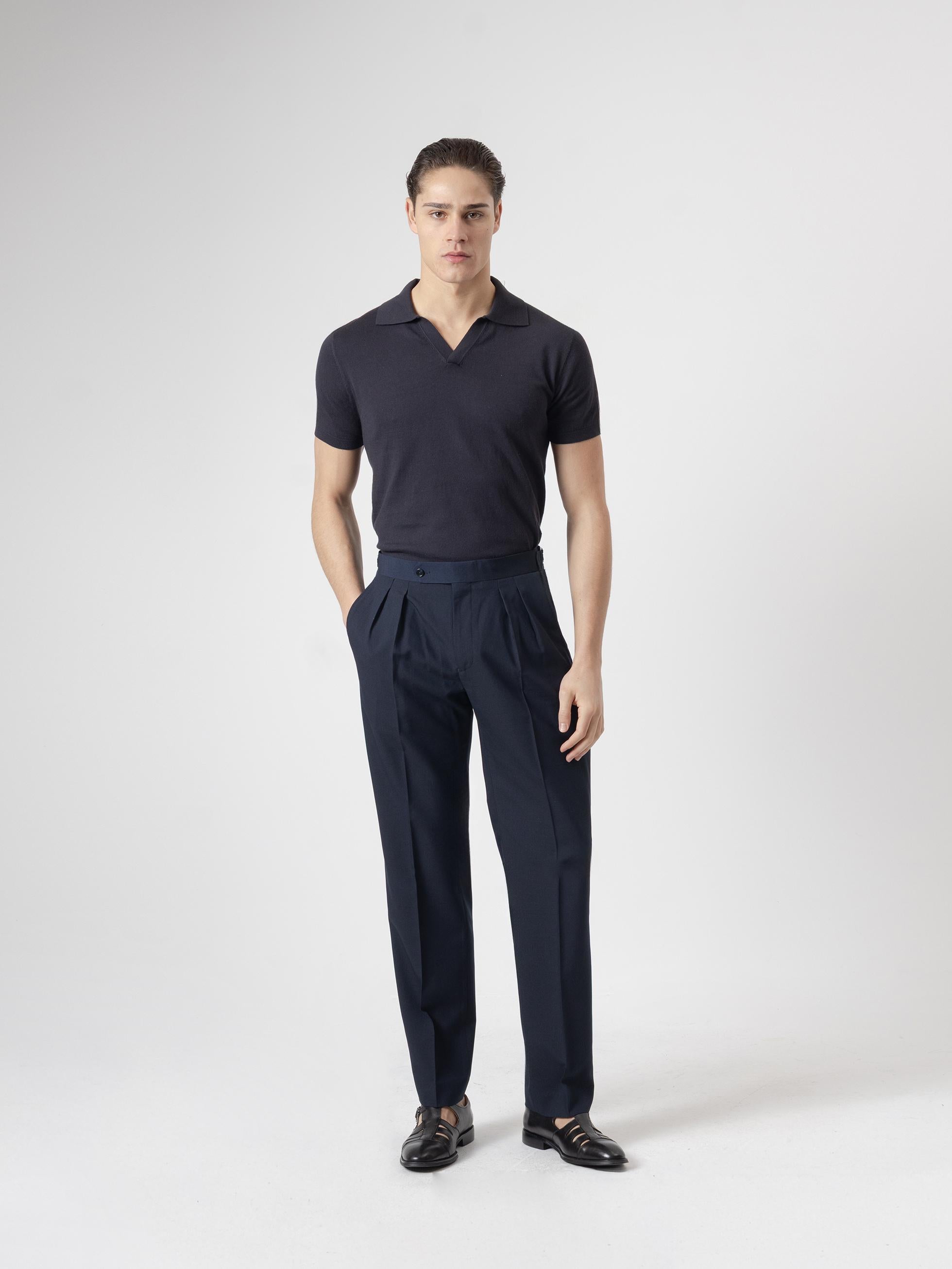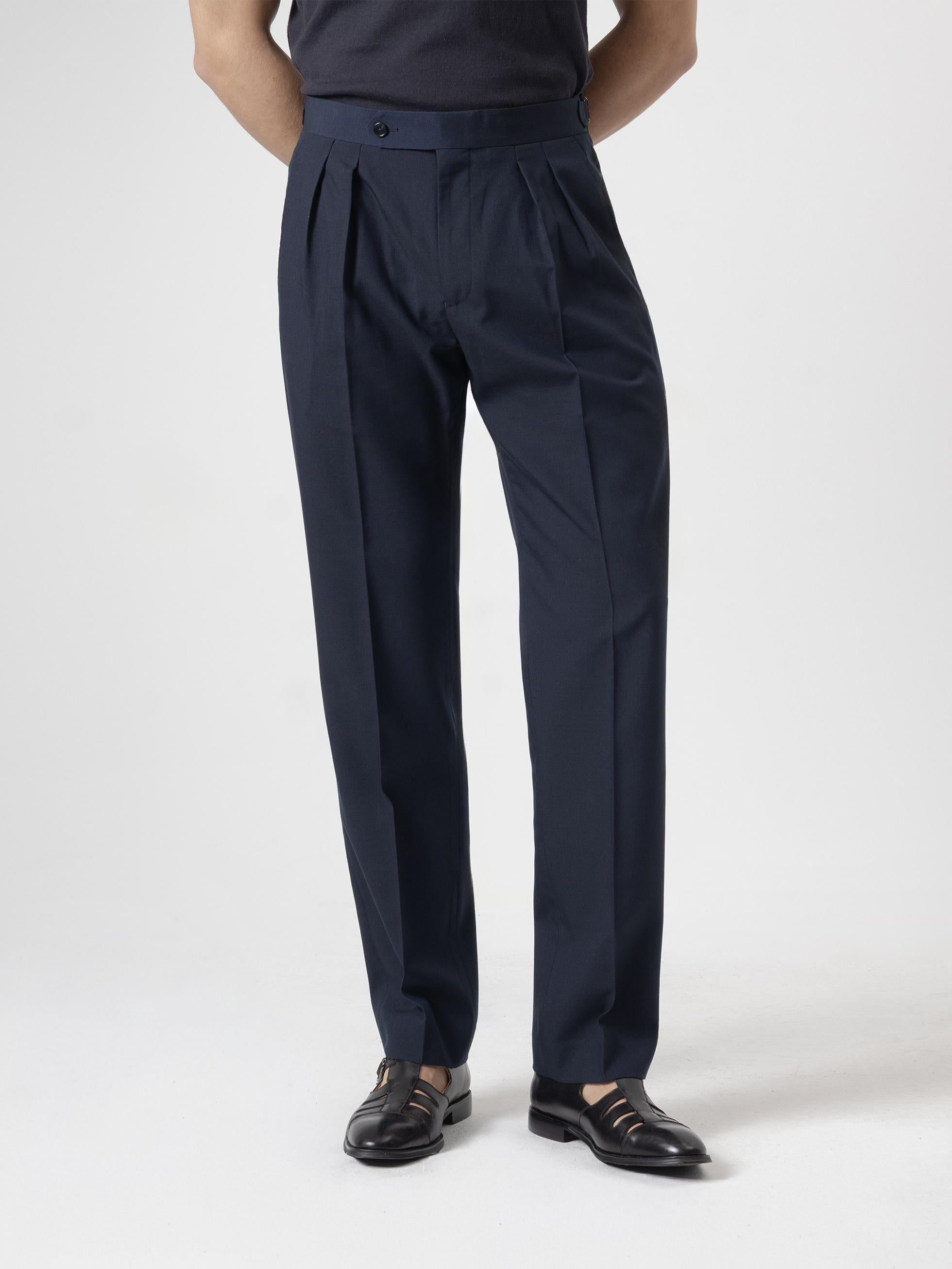 - Pernera ancha, 2 pliegues invertidos de gran profundidad en delantero