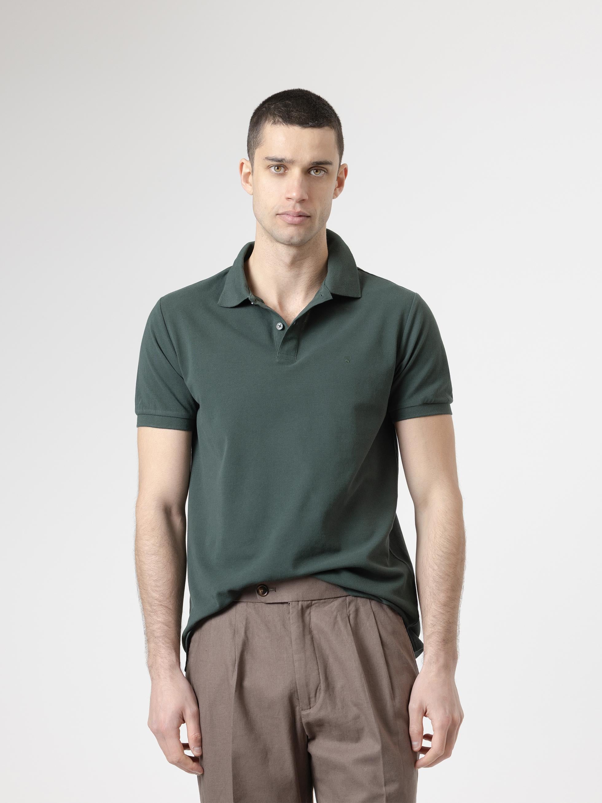 POLO BÁSICO PIQUÉ VERDE OSCURO