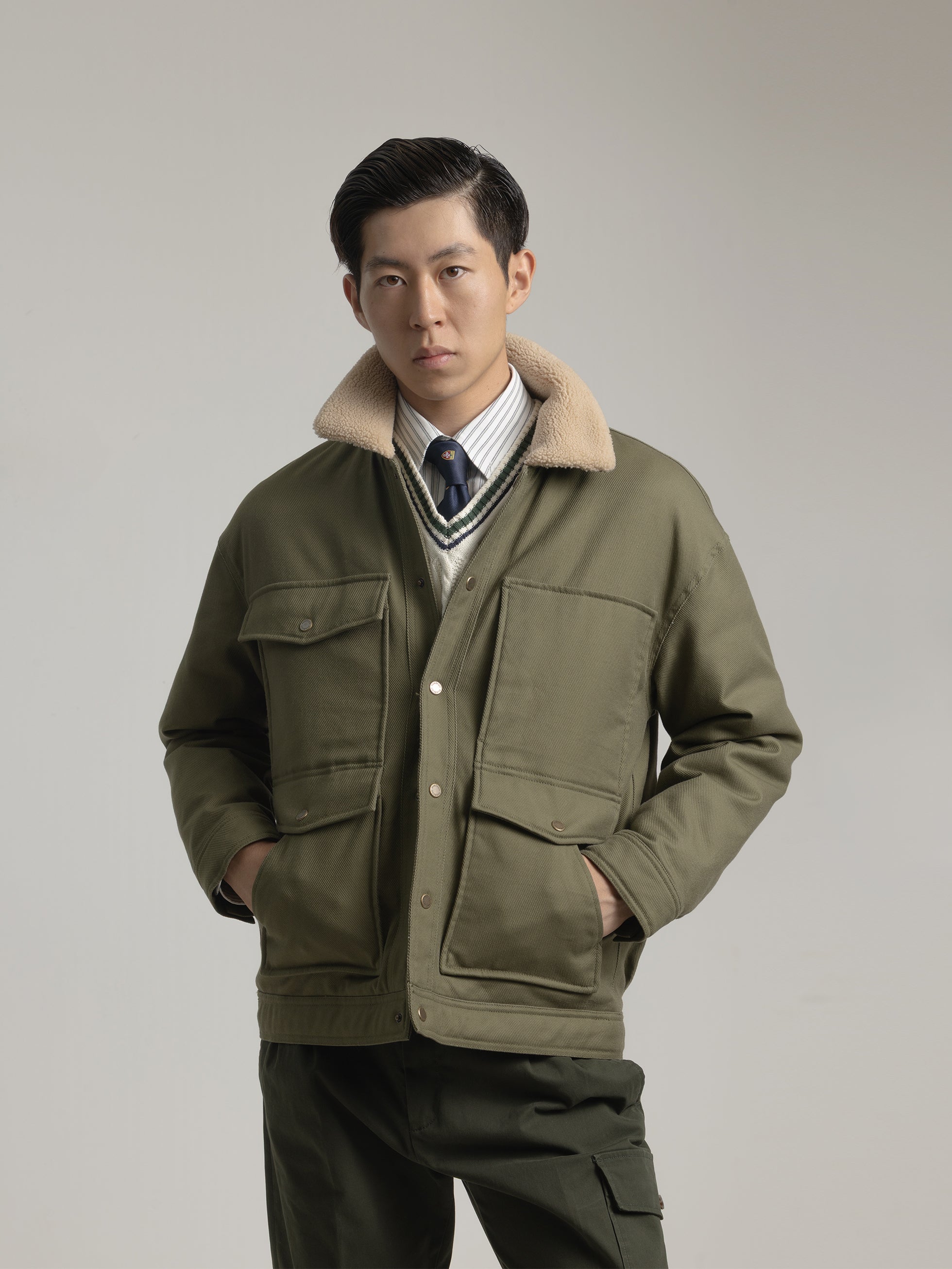 CHAQUETA WORKER CUELLO BORREGUILLO VERDE