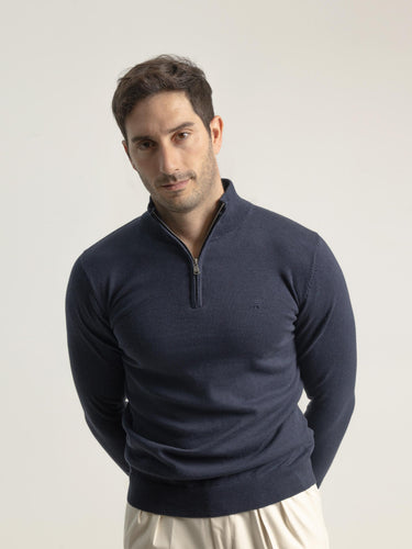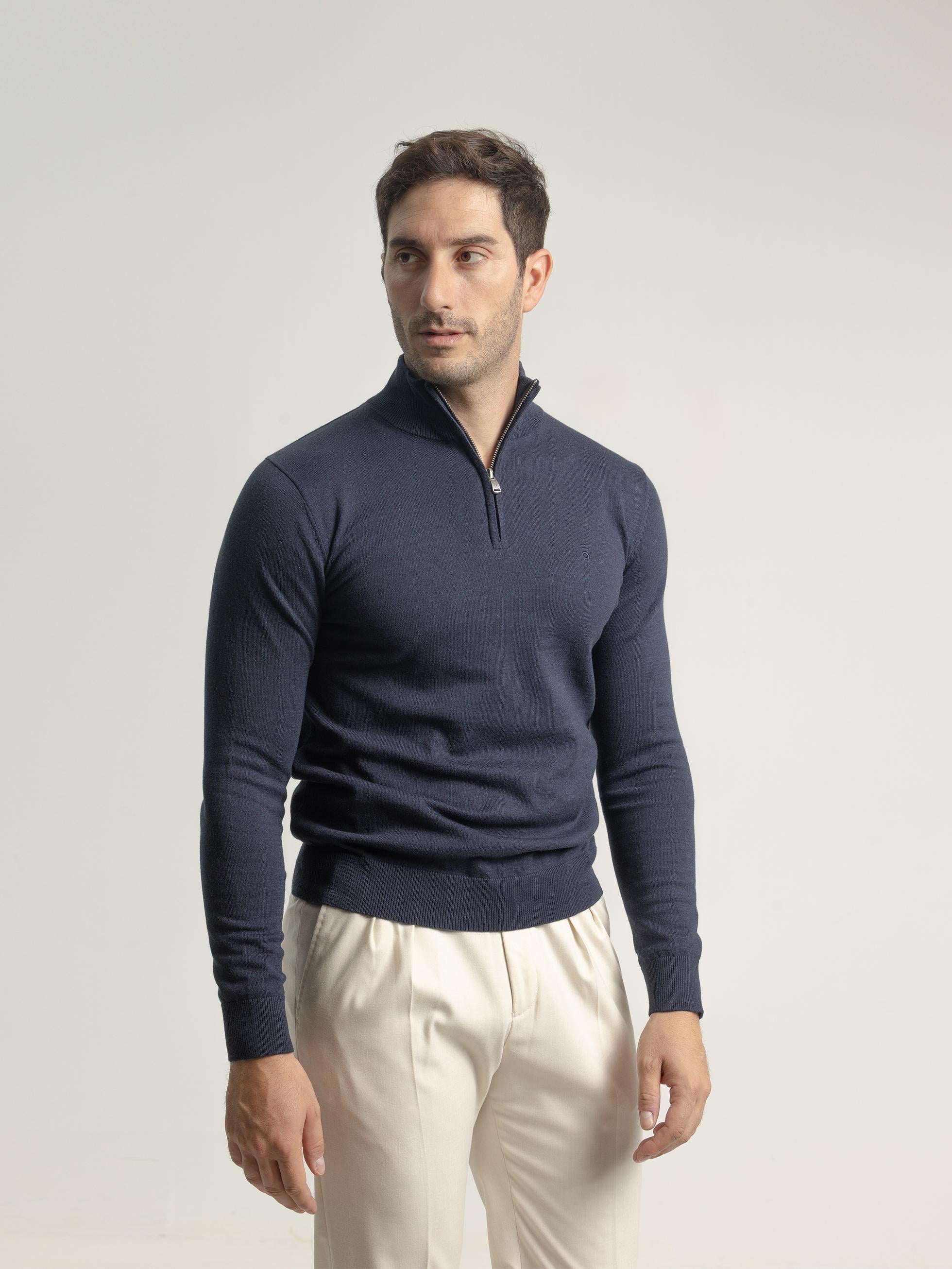 JERSEY CUELLO MOCK CREMALLERA AZUL TINTA