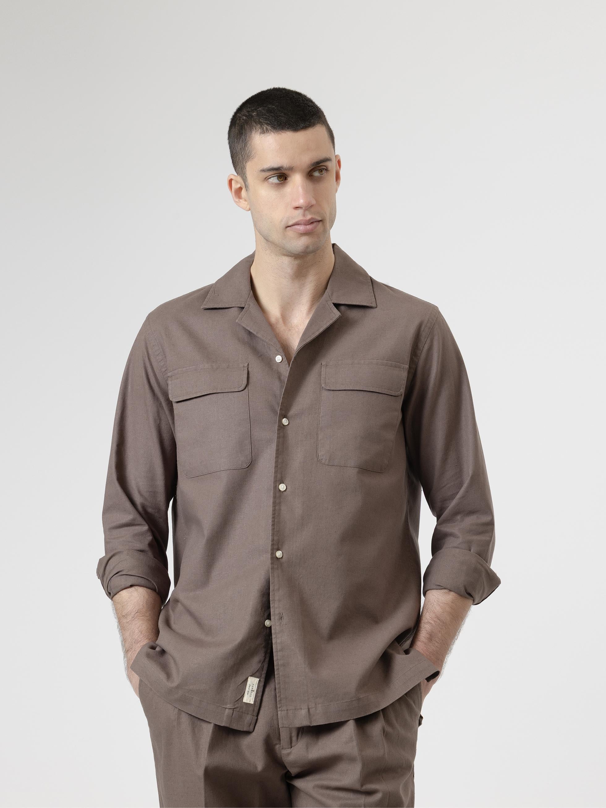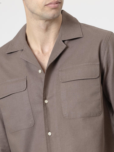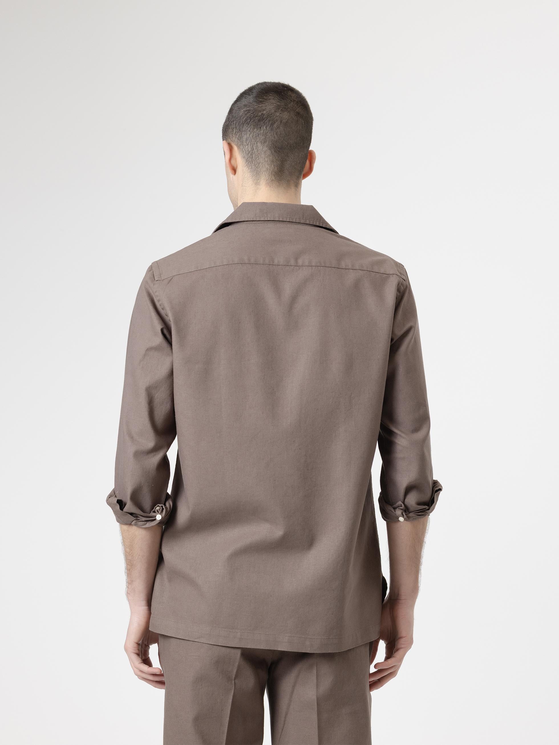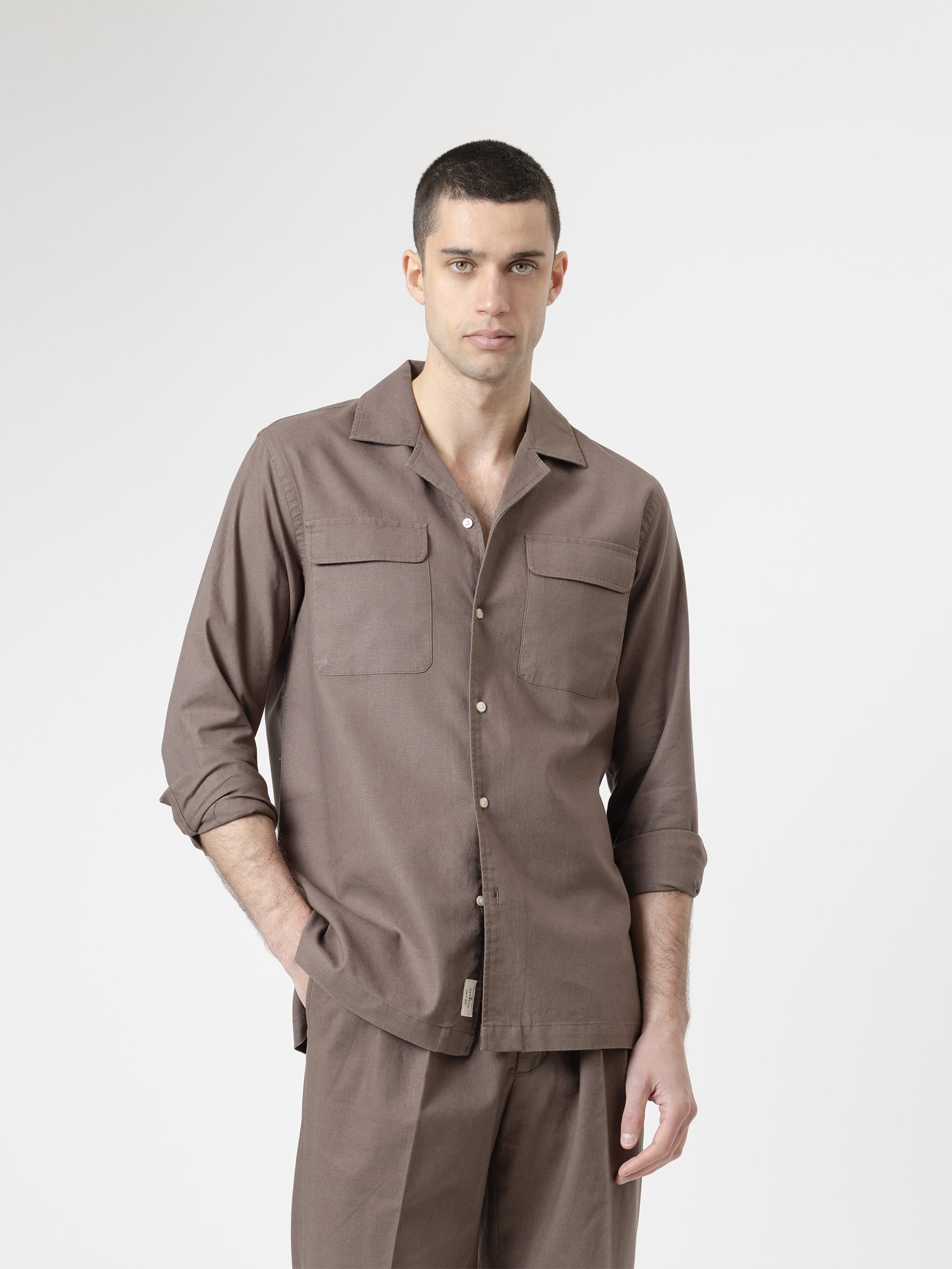 CAMISA SET LINO MARRÓN CHOCOLATE