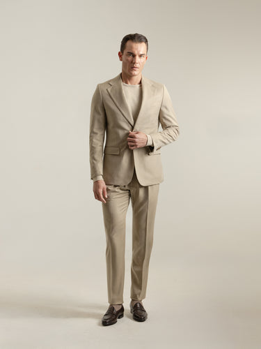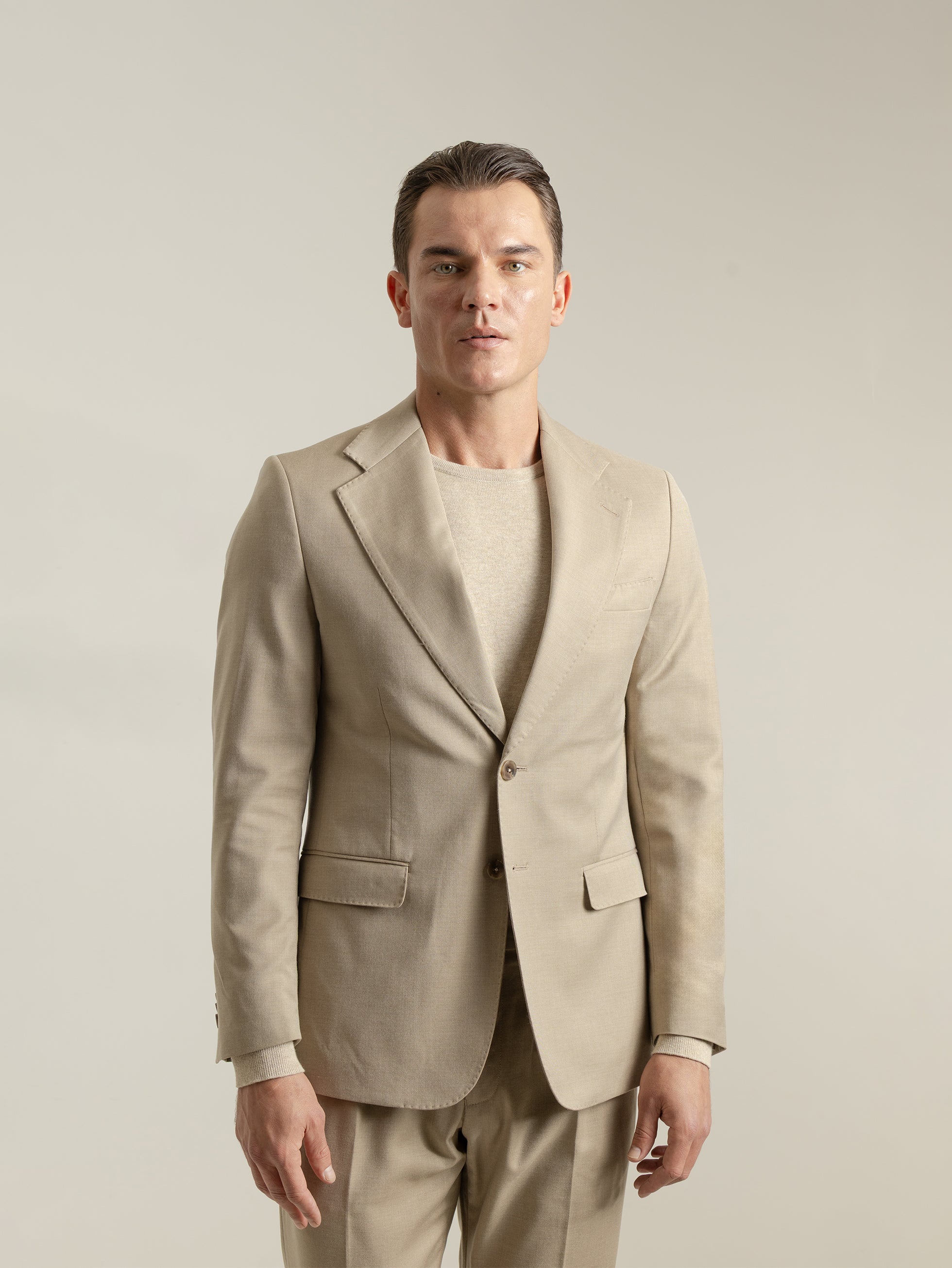 Línea Tailored, corte slim fit, diseño fil a fil arena.