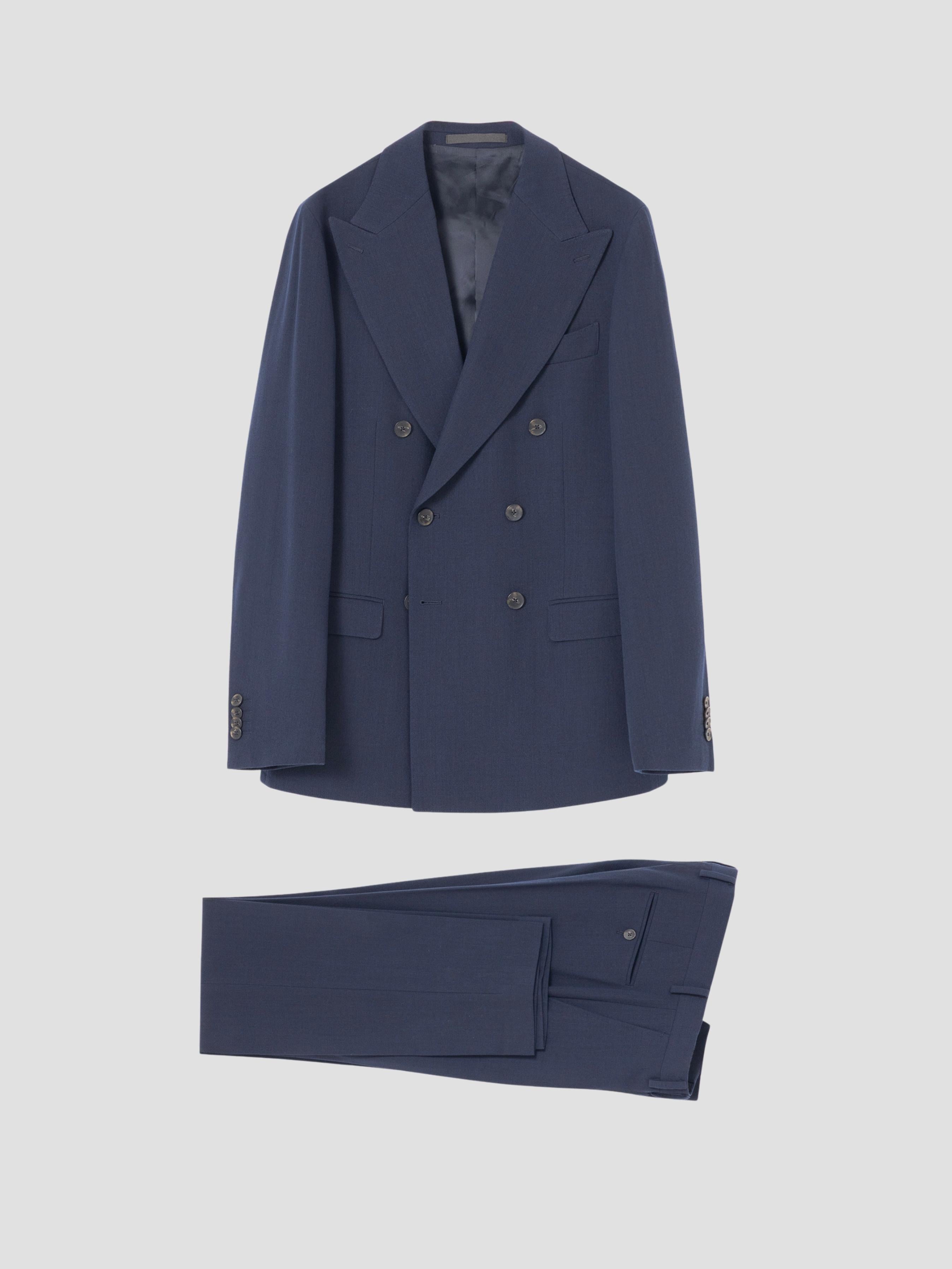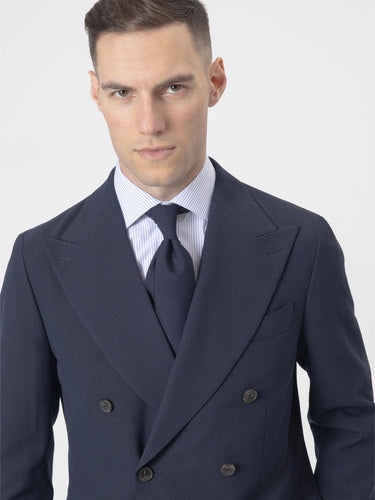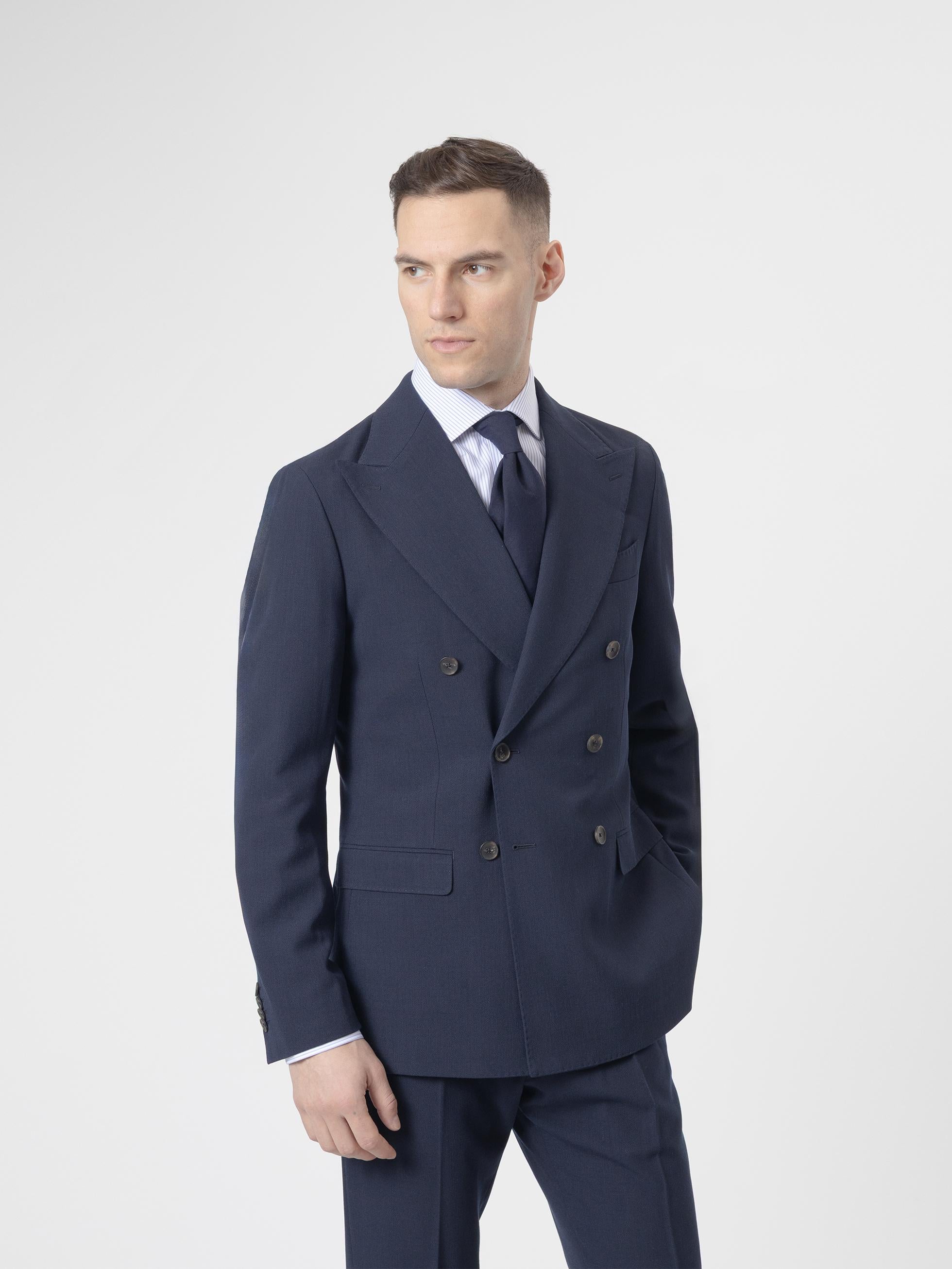 Línea Tailored. Corte slim fit. Diseño liso cruzado 6x2 color marino.