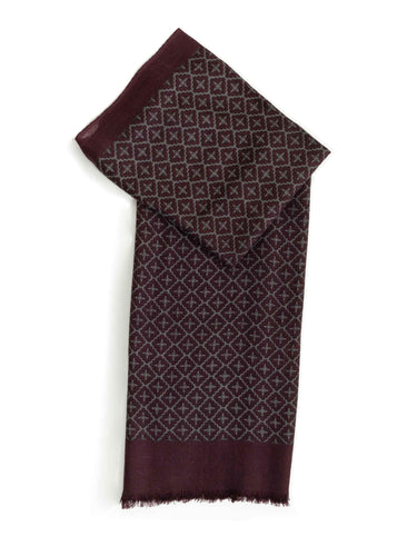 BURGUNDY WOOL GEOMETRIC PRINT FOULARD