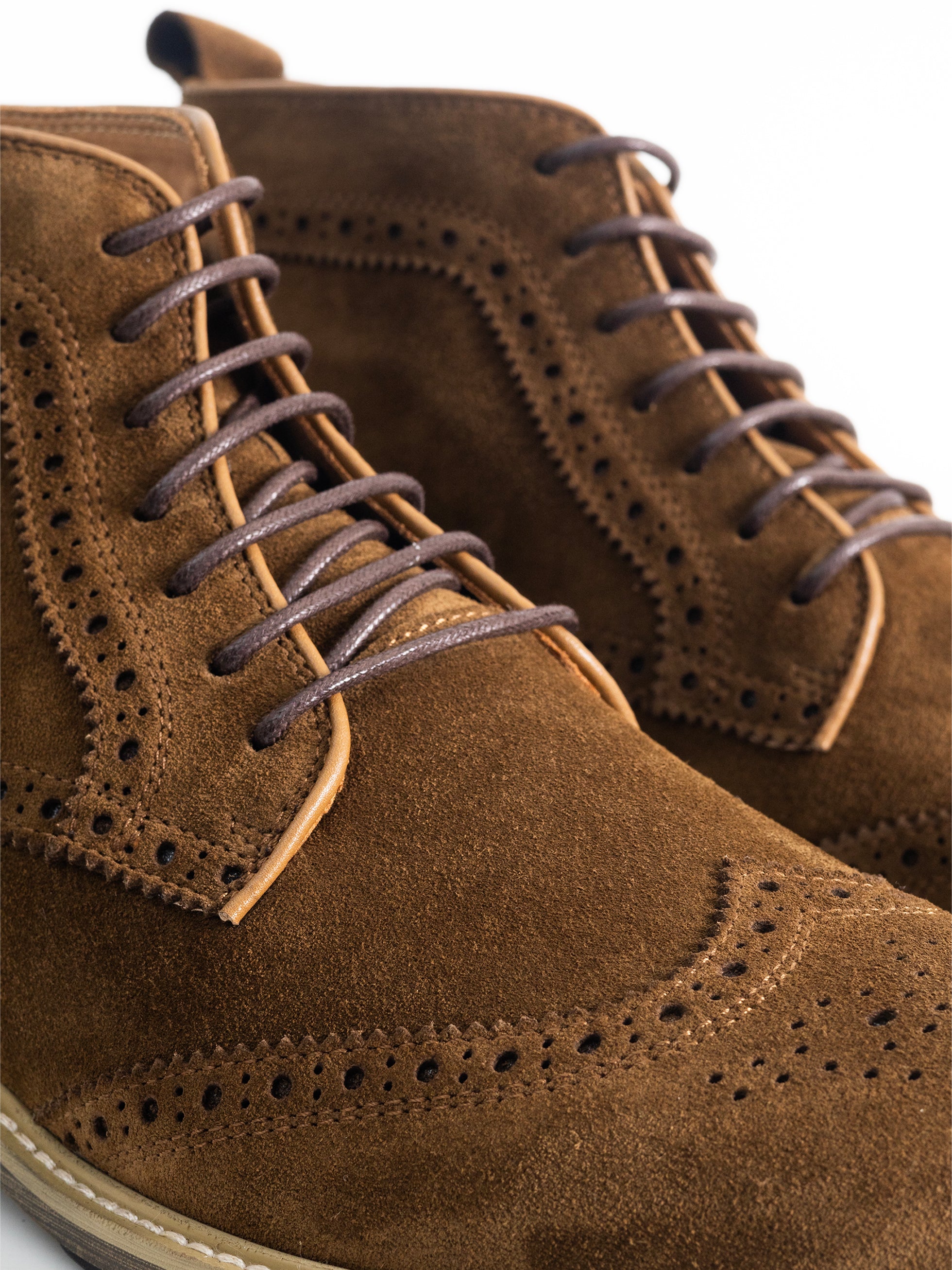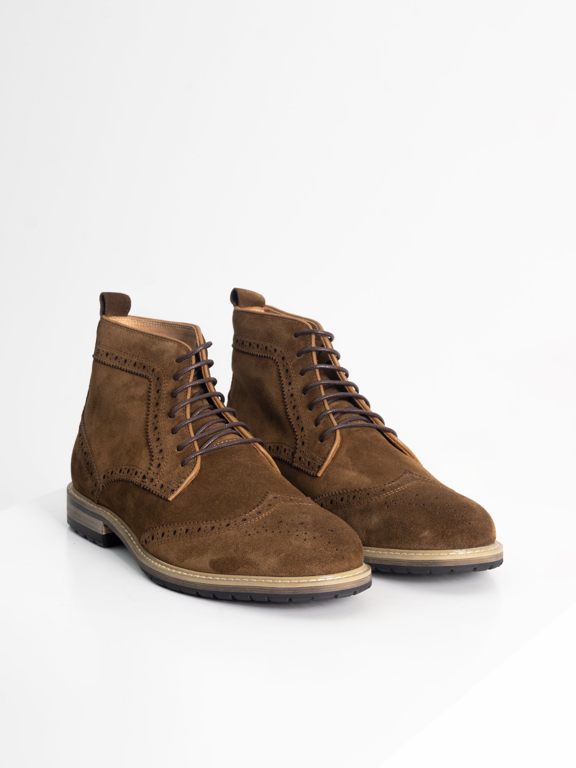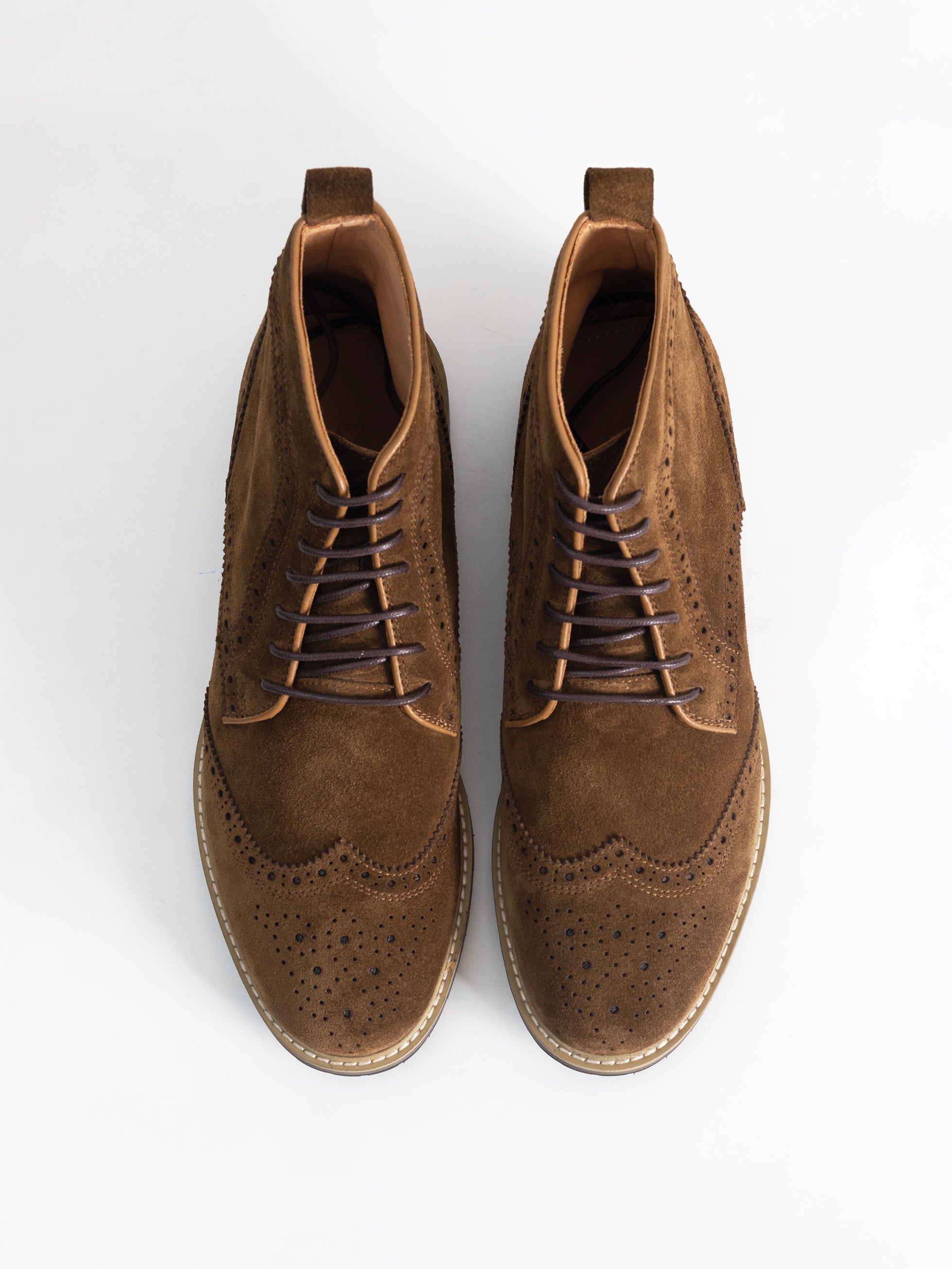 - Premium leather brogue boots.