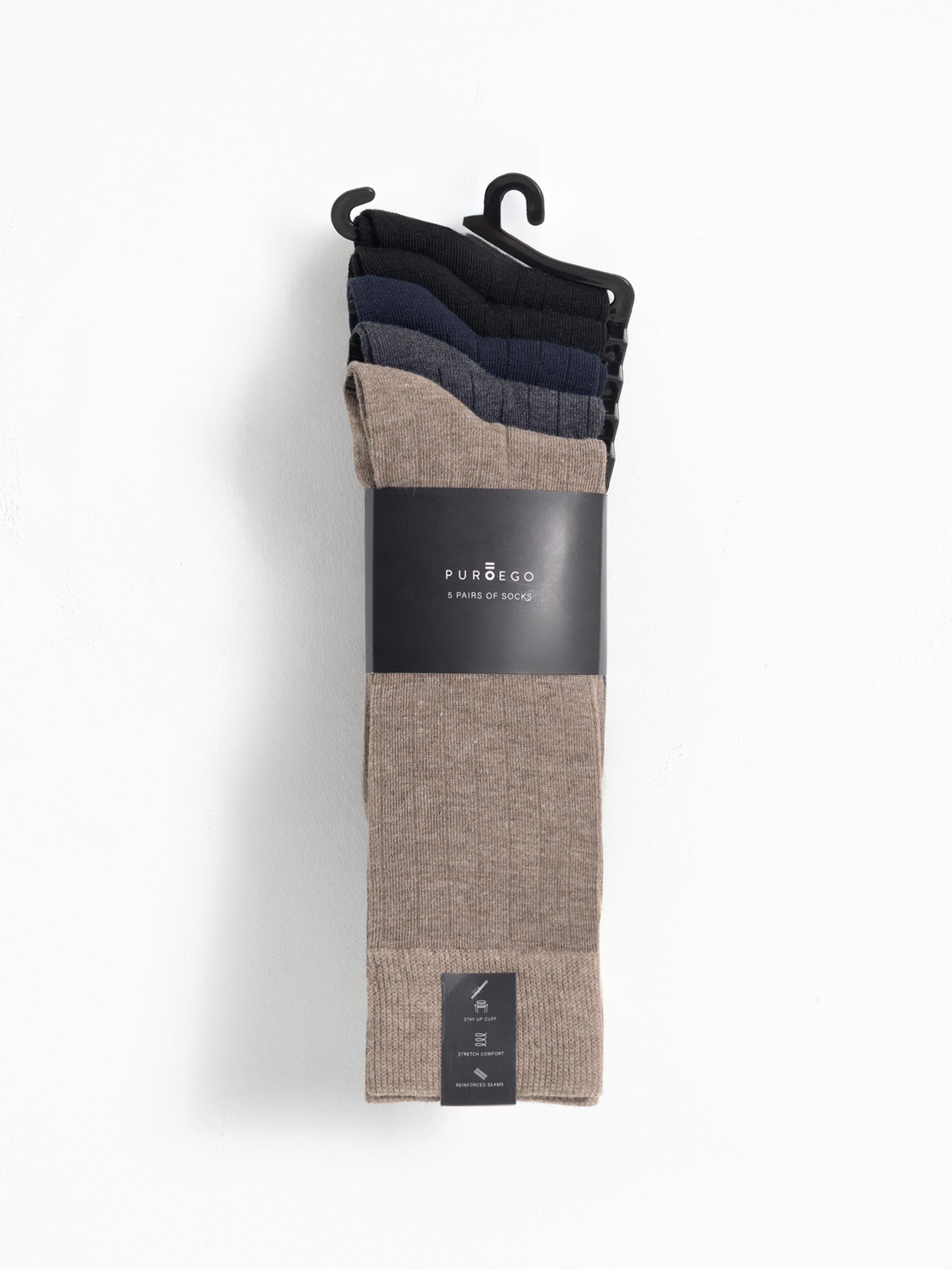 Within our most elegant line, you'll find a model of socks with a mid-calf length and ribbed design, made of and ribbed design, made of 100% cotton, in a variety of plain colours such as black, navy blue, brown, green, brown, with matching toe and heel. Perfect for to go with suits and smart looks.