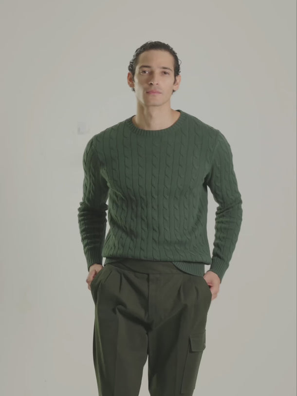 DARK GREEN CABLE KNIT SWEATER