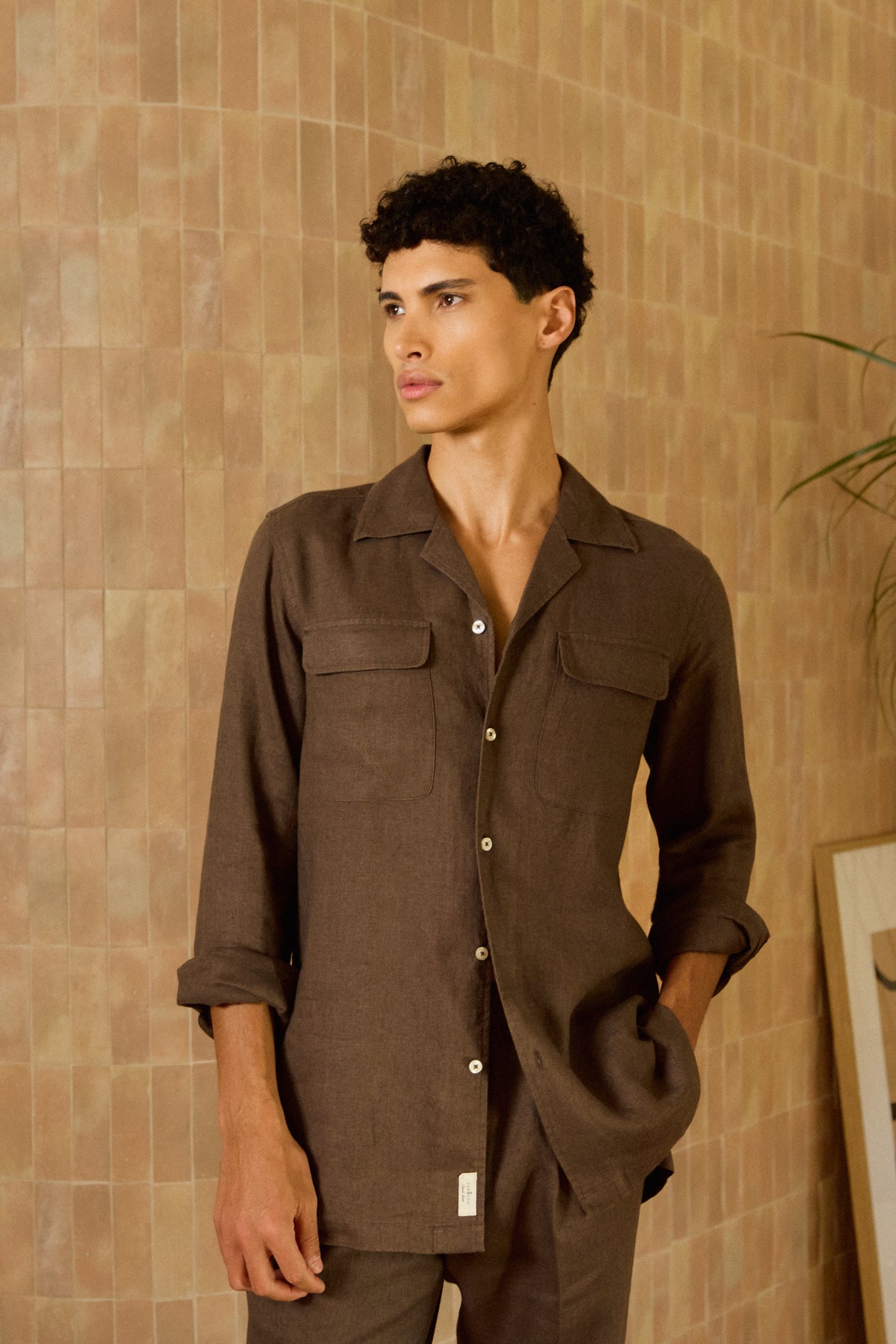 CAMISA SET LINO MARRÓN CHOCOLATE
