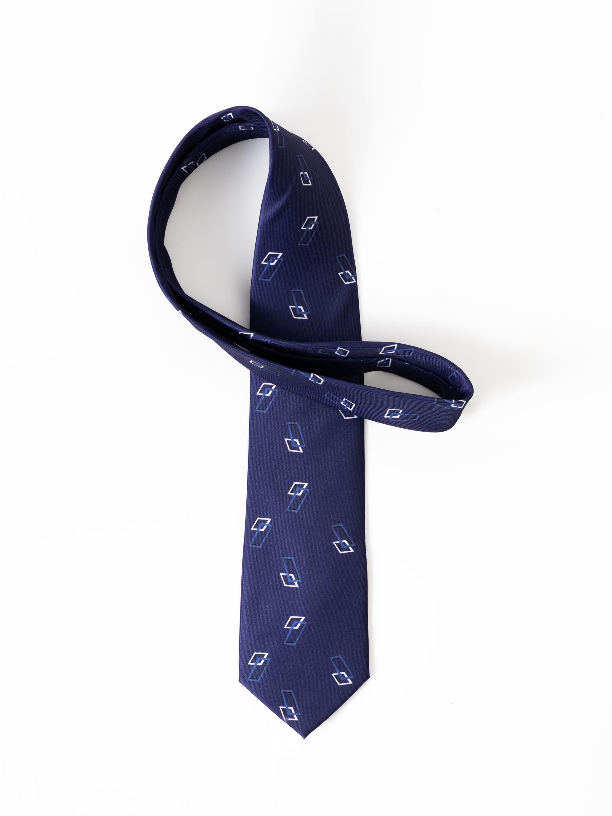 Corbata PuroEGO con estampado geométrico en rombos en color azul tinta.